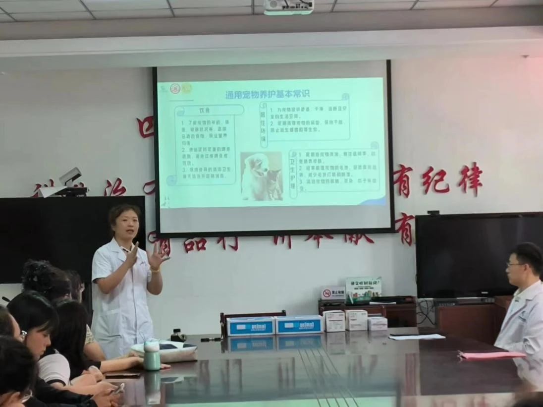 活动现场,宠物专业教师王聪慧首先为居民们详细讲解了宠物的饲养知识,包括宠物的饮食营养、常见疾病预防、疫苗接种等方面。通过生动形象的图片和案例,让居民们对如何科学养宠有了更深入的了解。随后,洛职爱宠联盟社团的志愿者们通过现场互动的方式,解答了居民们在养宠过程中遇到的各种问题,并免费提供宠物体检卡、驱虫项圈和狂犬疫苗接种名额各20份。