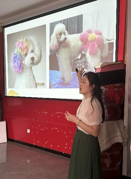 随后,高张伟介绍了犬常见的造型,并为大家解析了宠物精美造型的设计理念和流程。学生们通过观摩学习,对宠物美容与养护有了详细地了解。同时,高张伟对宠物行业和宠物从业者也进行了详细地介绍,使学生们对宠物行业有了更全面地认识。